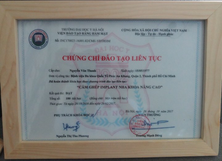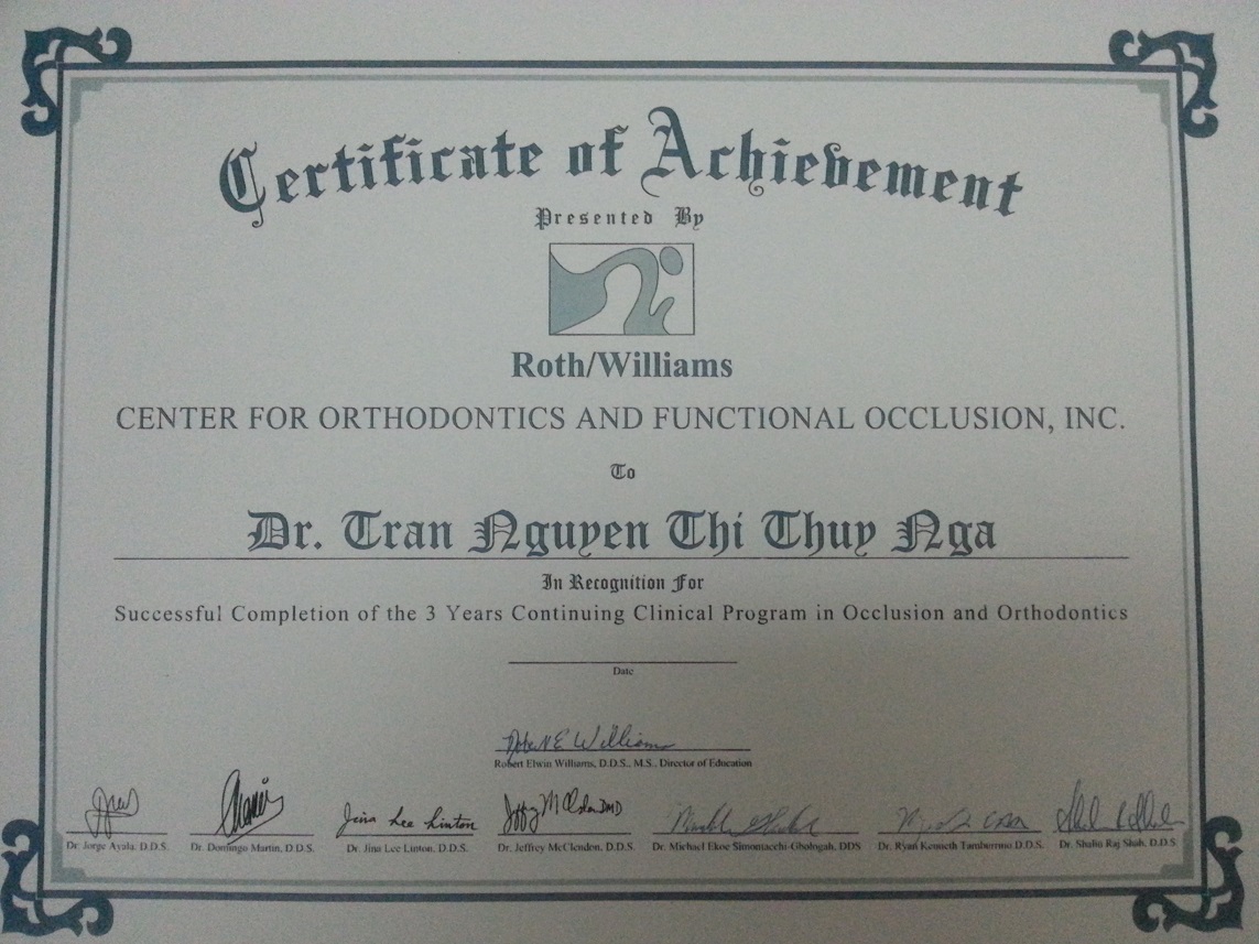 Bằng Niềng Răng Danh Tiếng Hiệp Hội Niềng răng Quốc Tế Roth Williams MỸ